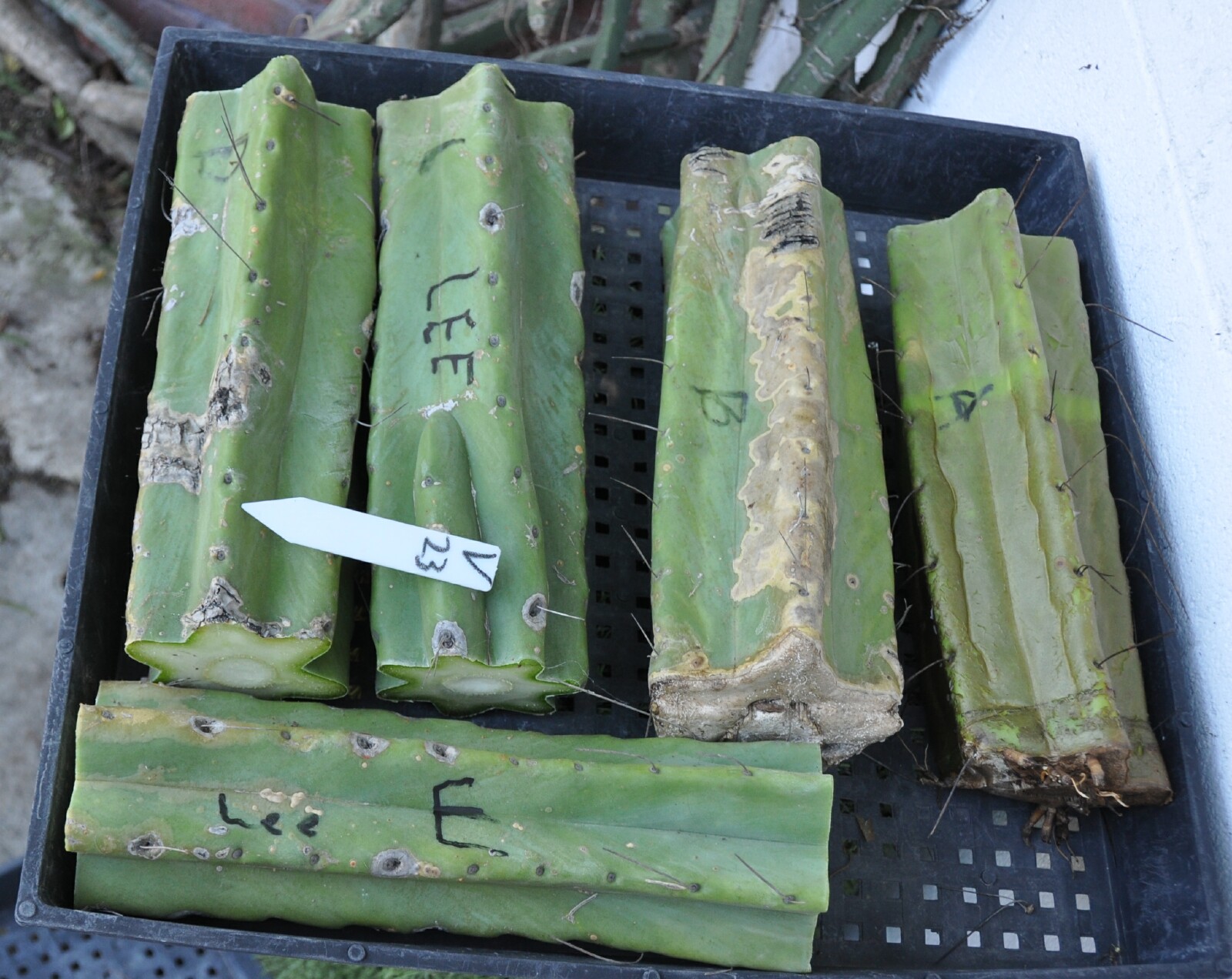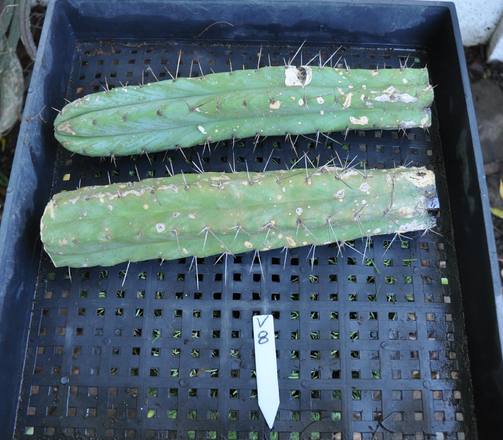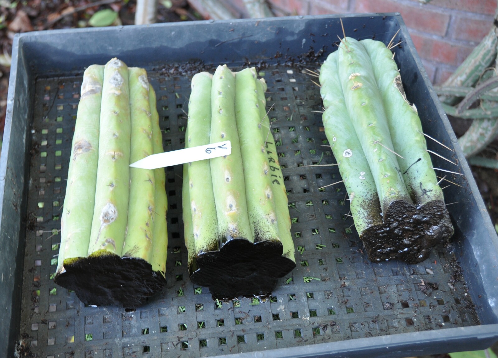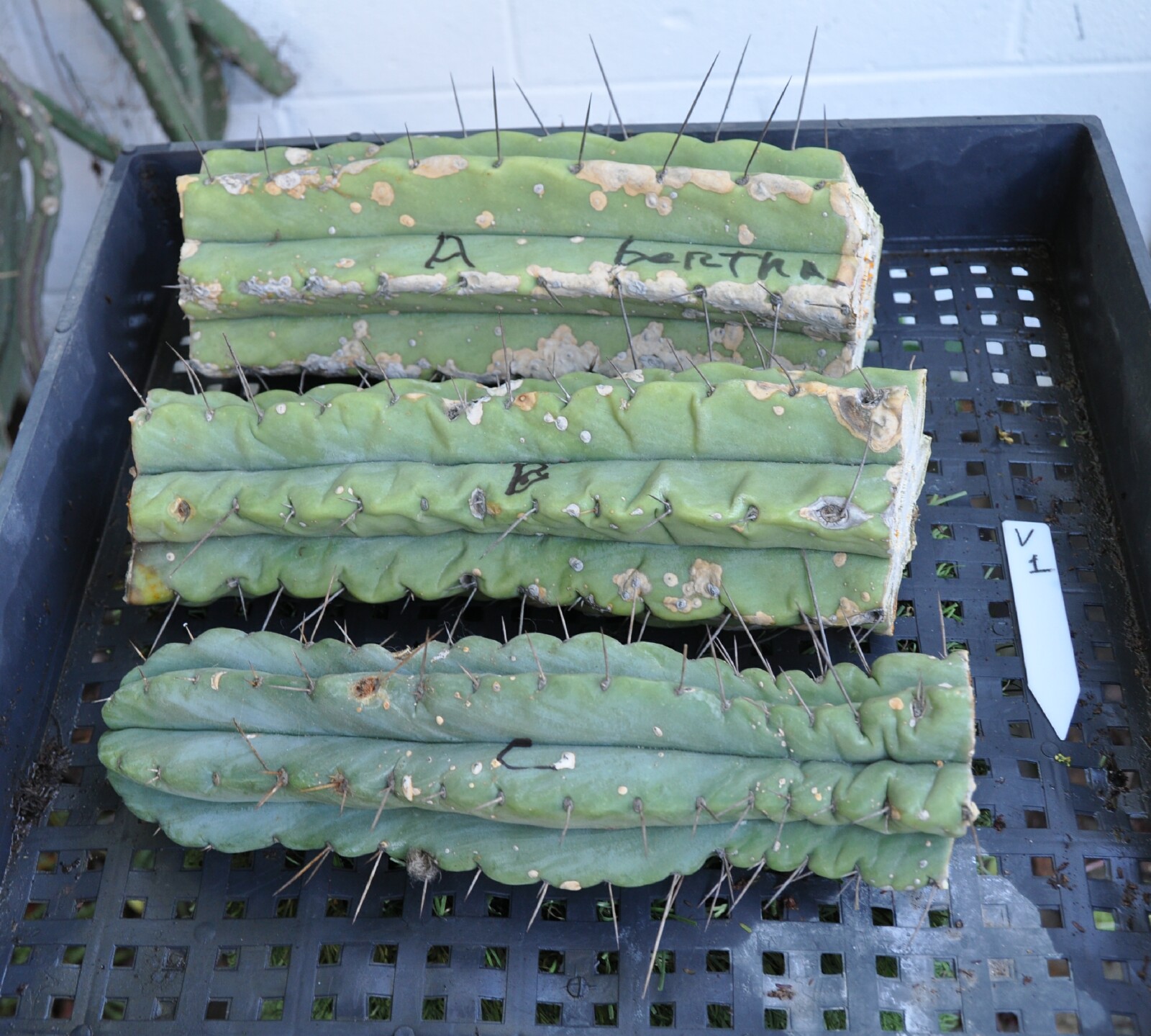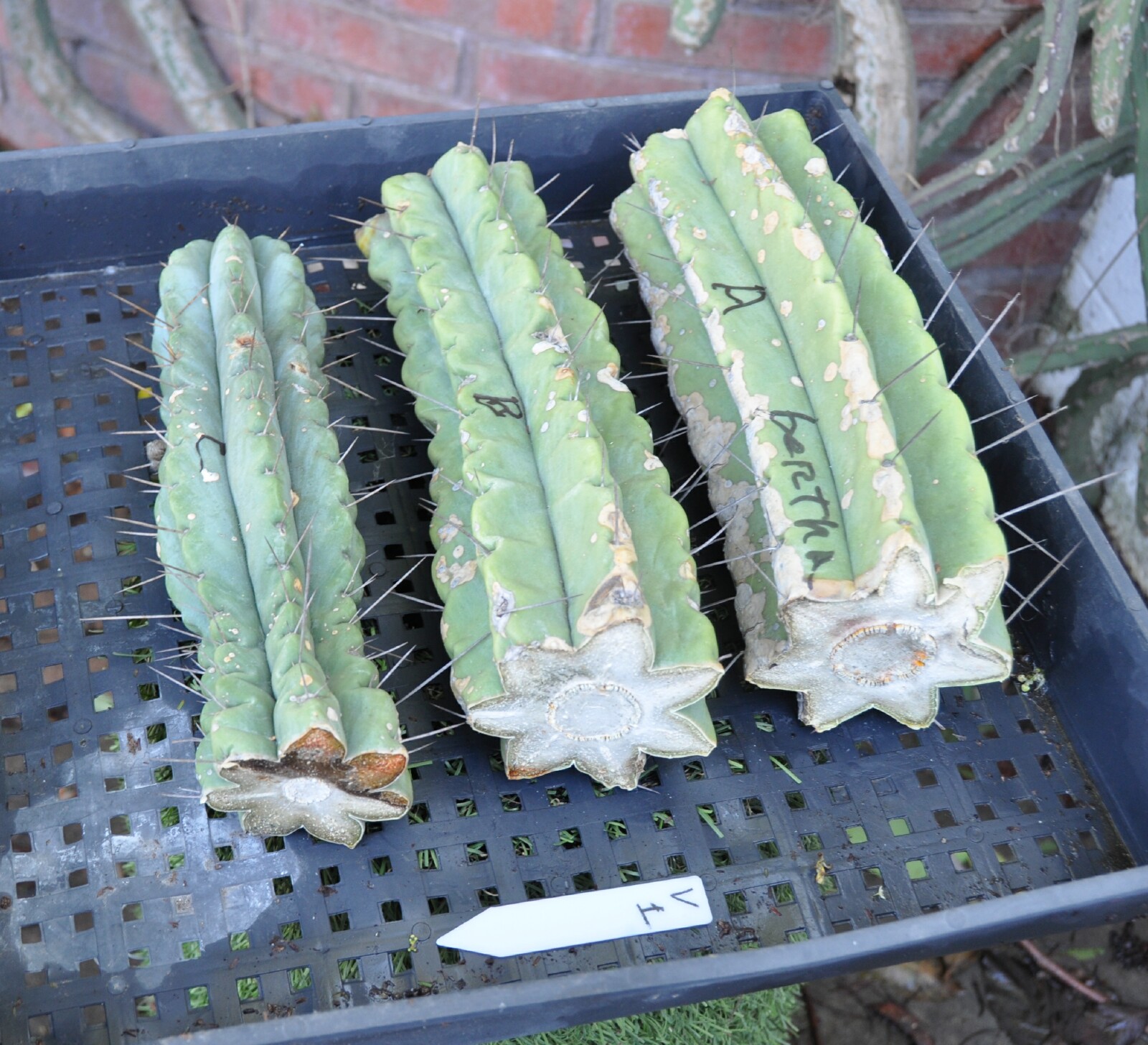 10" Lumberjack tip + 2 10" mids of Bridgesii Barbie pruning sealer spray on some ends; pups & roots easily grow thru the sealing layer