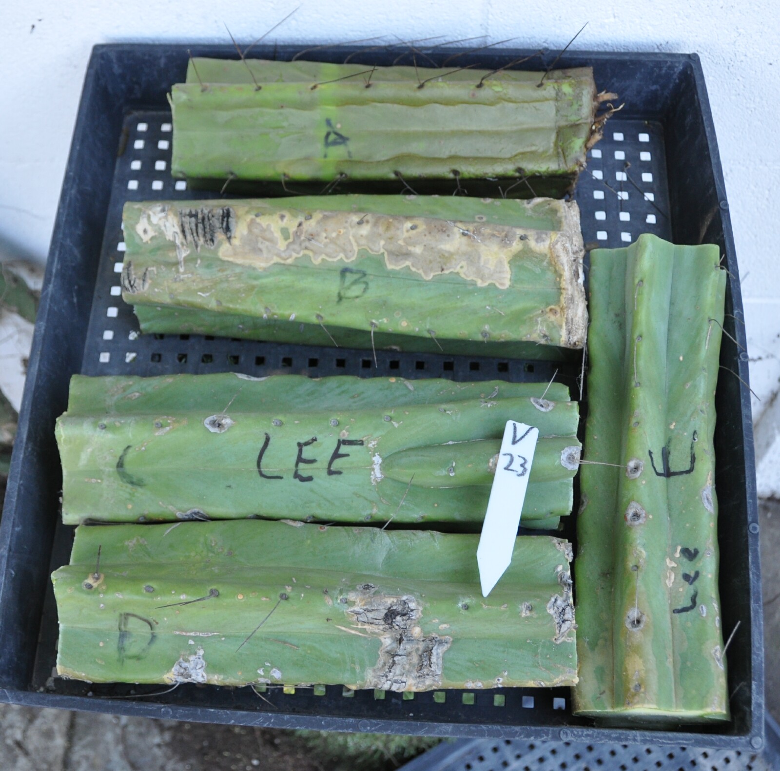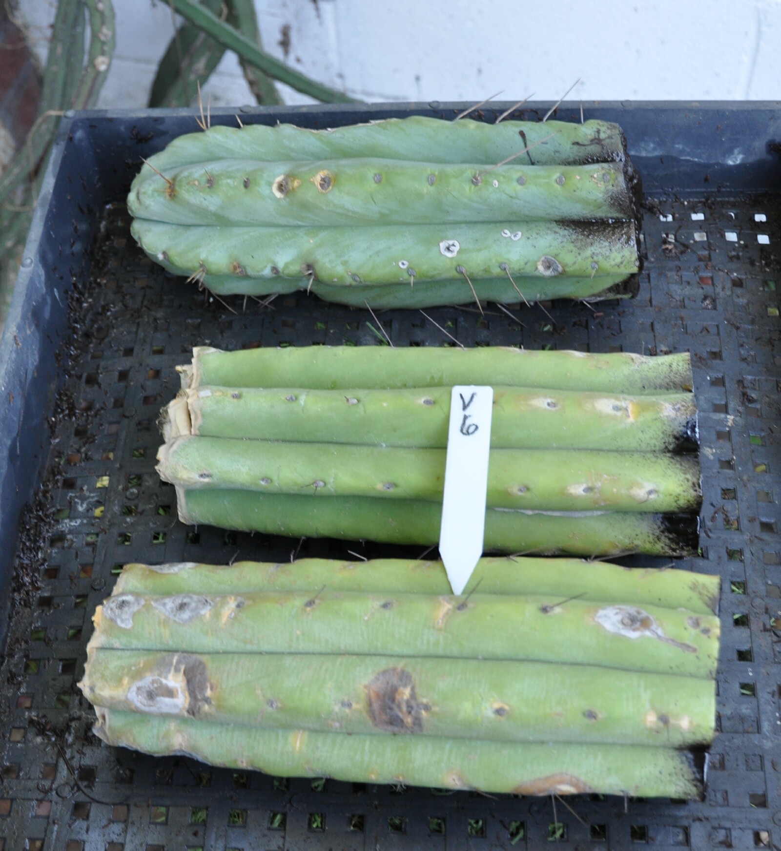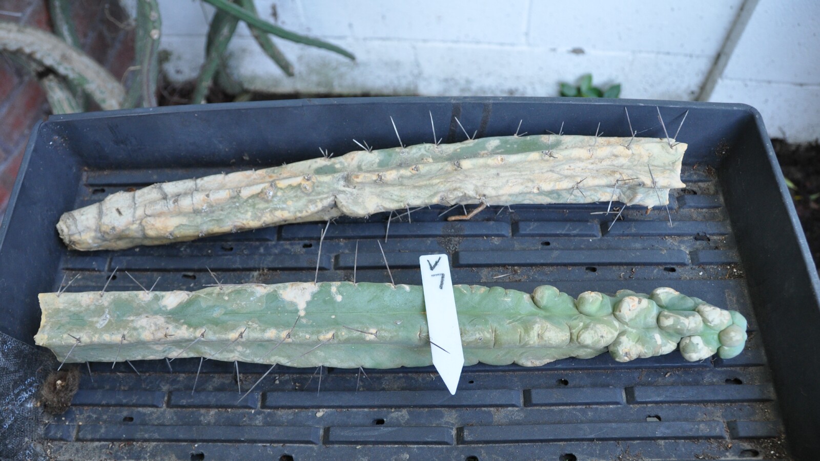 12" Peru Bonny x Dawsons Terscheckii faint varigation on scion cut end sprayed with pruning sealer due to unfavorable callousing conditions Email Misplant@aol.com
